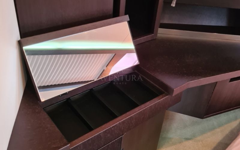 • Drevené žalúzie v dolnom salóne a prednej kajute, závesy v hornom salóne a zadných kajutách